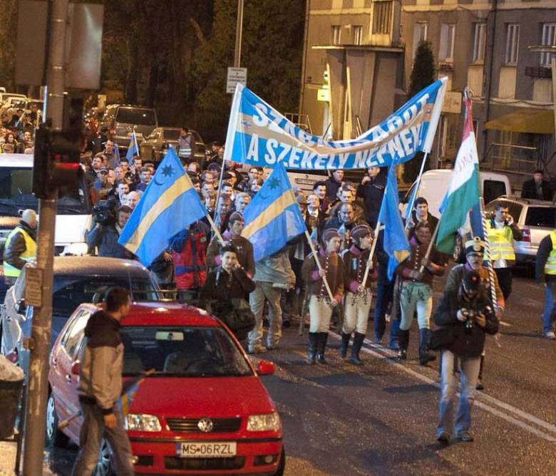 Aszónoklatok után a tömeg fáklyákkal indul a város főtere felé, hogy a tüntetés négy szónoka, Tőkés László, Izsák Balázs, Biró Zsolt MPP-elnök, az EMNP képviseletében pedig Sánta Imre nyújtsa át a román kormány helyi képviselőjének a közfelkiáltással elfogadott petíciót. Utunkat nézelődők, ablakokból leselkedők, utánunk köpők és román zászlók lobogtatásával válaszolók szegélyezik. A tömeg népdalokat és katonadalokat énekelve jó hangulatban teszi meg a két kilométeres utat. Otthon vagyunk Marosvásárhelyen. A 14 hónapos Sós Dengezik békésen aludt apukája hátán a babahordozóban, miközben szülei a székely mártírok marosvásárhelyi emlékművénél, majd a városközpontba tartó felvonulás során az autonómia mellett tették le voksukat. Számára már biztosan nem csak álom lesz Székelyföld önrendelkezése.