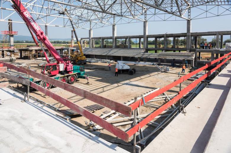 Sepsiszentgyörgy Csíkszereda felőli kijáratánál képtelenség nem észrevenni a látványt: a sepsiszentgyörgyi sportaréna napról napra egyre markánsabb képet ölt. Immár az első tetőlemezek is a helyükre kerültek, a fővállalkozó, a kolozsvári ACI építésvezetője, Emanuel Boroş szerint a 35 százalékot is meghaladja az építkezés elkészültségi állapota. Ha minden a jelenlegi ütemben halad, 2016 novemberének végén minden igényt kielégítő rendezvénycsarnokot adnak át a háromszéki fővárosban.