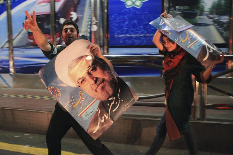 Az urnazárást követő beszámolók zöme lelkesedéssel volt tele, utalva a Teheránban négy évvel ezelőtt elfojtott „zöldszalagos” tüntetésekre. A riportok eleinte szívesen időztek az utcára özönlő emberek ünneplésén, a nyilvános tereken alkoholt iszogató fiatalok győzelmi mámorán – az csak kevés sajtóorgánumon szivárgott át, hogy a vallási rendőrség az éjfél utáni órákban mégiscsak őrjáratra indult, gumibottal igyekezve józan mederbe terelni az „istentelenkedést”.